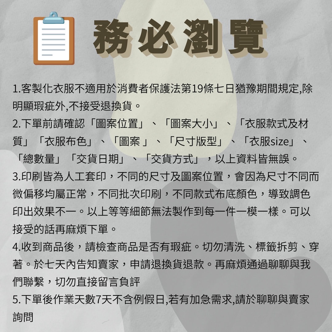 2.客製化產品,請聊聊私訊賣家,提供清晰圖檔,與賣家確認後再下單!