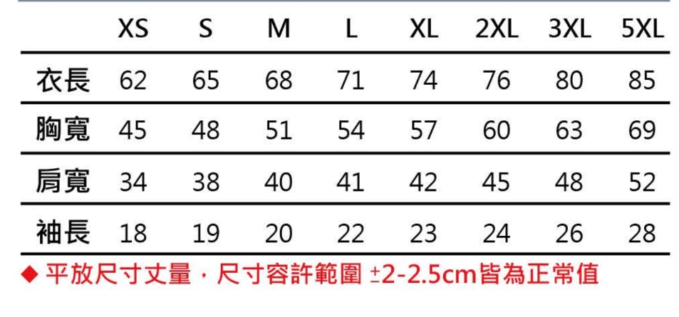 1.成衣尺寸有士2.5cm誤差值均為正常範圍。