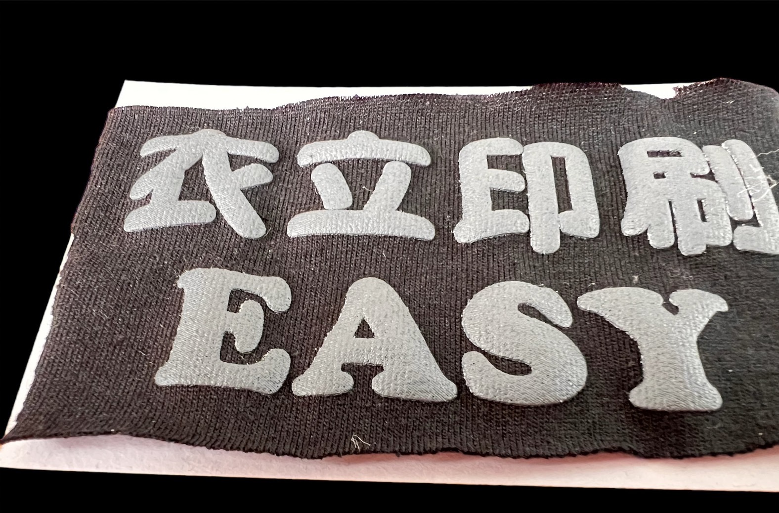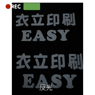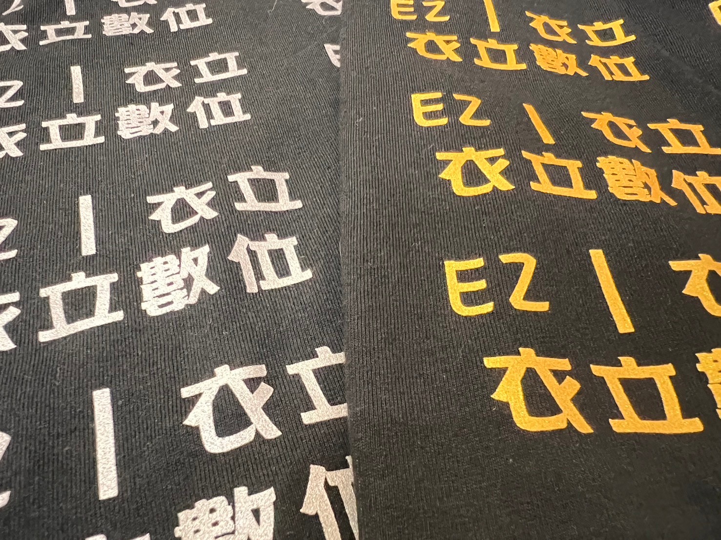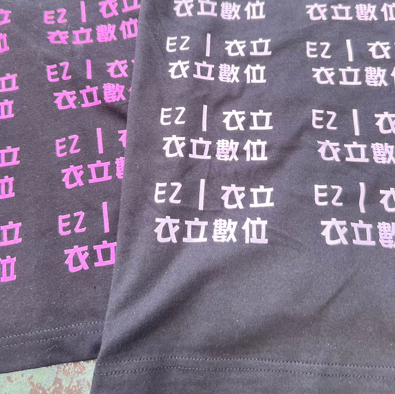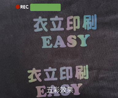 從不同角度看 都會有不同的效果。 先以網版印製方式,後壓印於衣服上。