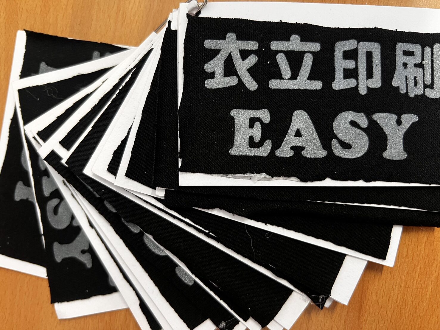 先以網版印製方式,後壓印於衣服上。